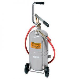 Hava ile çalışan tekerlekli 24 litre tanklı, seviye gösterge sayaçlı yağ dağıtım cihazı, esnek hortumlu dağıtım tabancası ile birlikte.